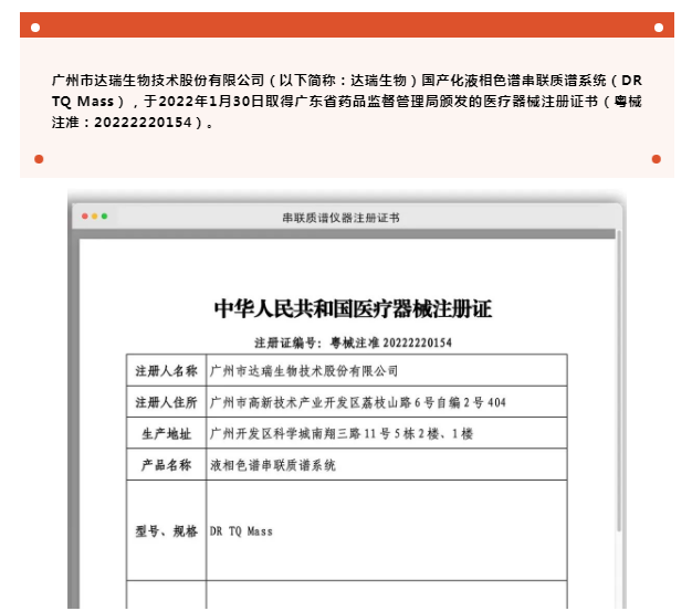 喜訊|達瑞生物液相色譜串聯(lián)質(zhì)譜系統(tǒng)(DR TQ Mass)獲批上市!
