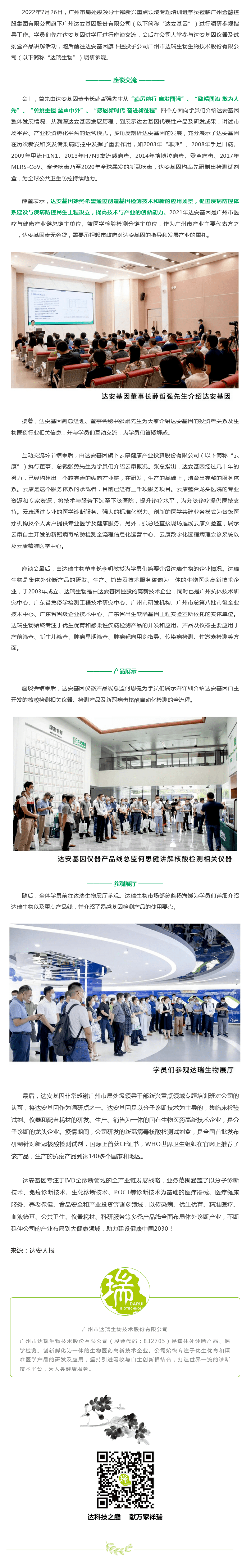 廣州市局處級領(lǐng)導干部新興重點領(lǐng)域?qū)n}培訓班蒞臨達安基因調(diào)研指導